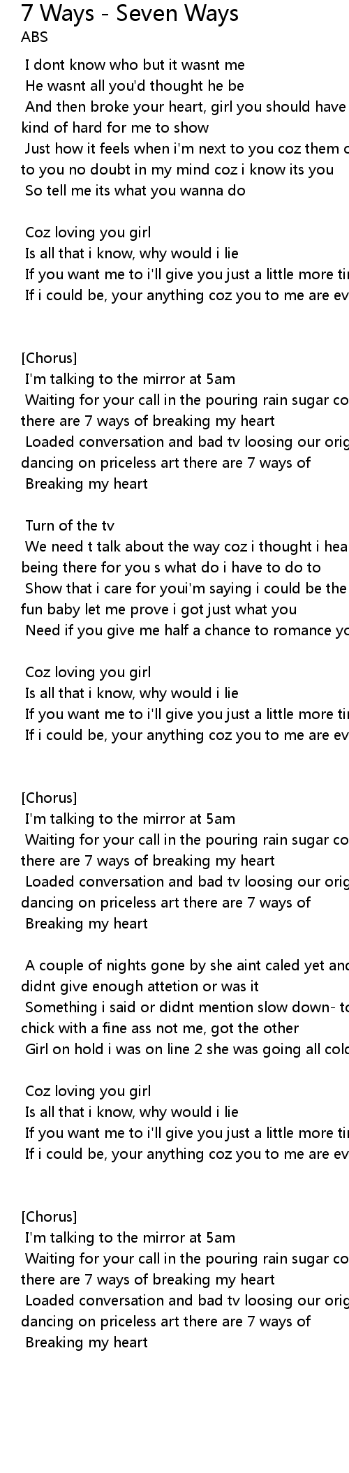 Waiting for your call in the pouring rain sugar coated kiss and a lipstick mark there are 7 ways of breaking my heart |