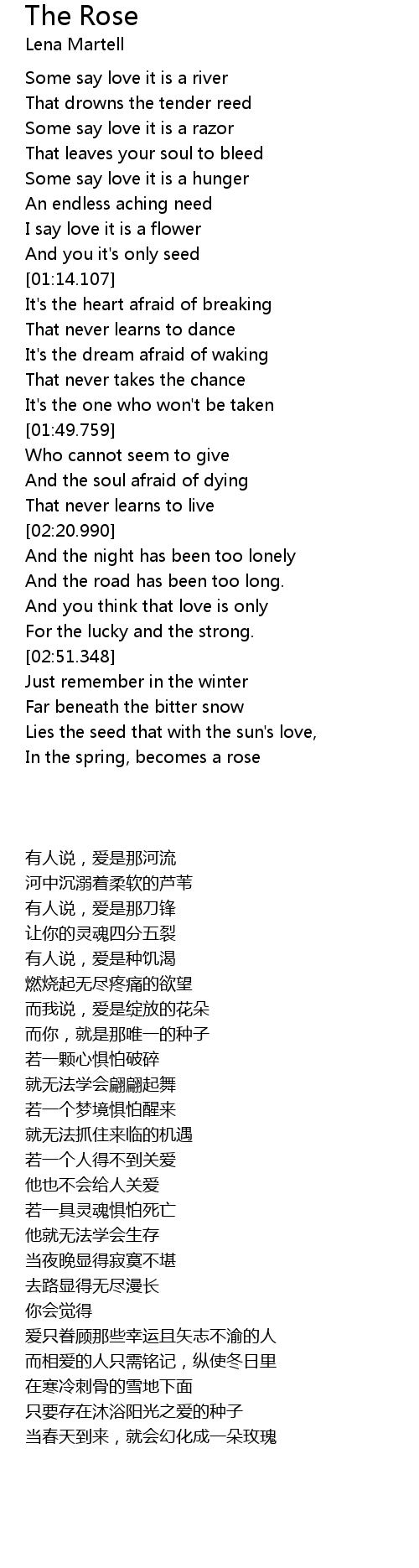 | [03:16.399] | In the spring, becomes a rose |