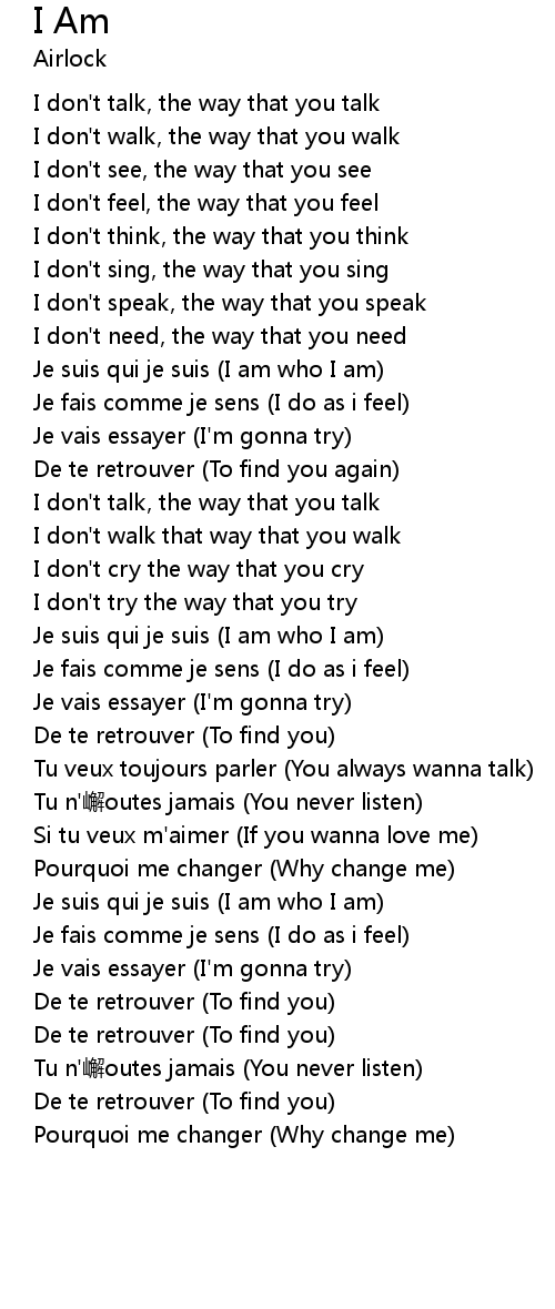 | Je suis qui je suis I am who I am | |