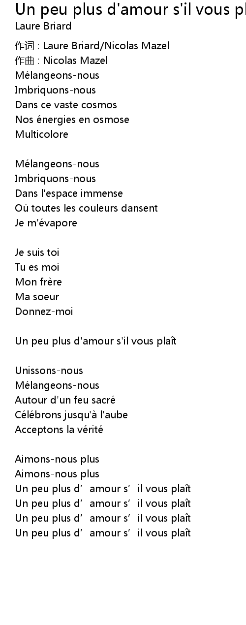 | 作词 : Laure Briard/Nicolas Mazel | |