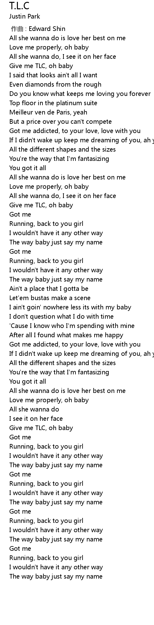 | [00:22.399] | Give me TLC, oh baby |