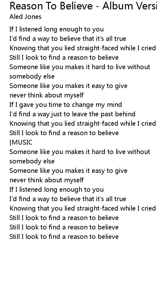 Still I look to find a reason to believe |