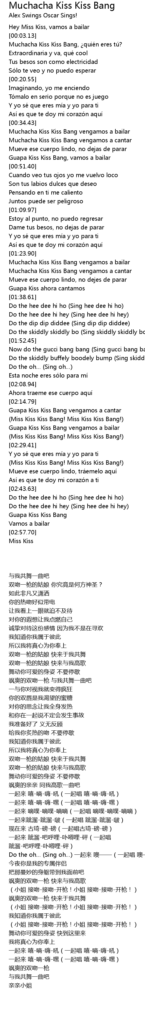 | [00:34.74] | Muchacha Kiss Kiss Bang vengamos a bailar |