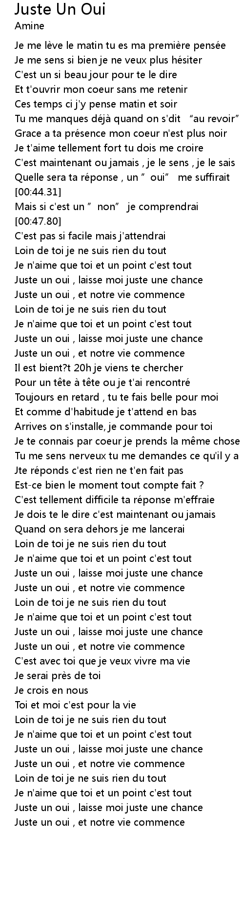| [00:40.67] | Quelle sera ta re ponse , un " oui" me suffirait |
