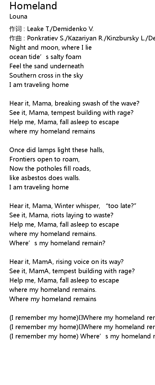 | (I remember my home) Where my homeland remains | |