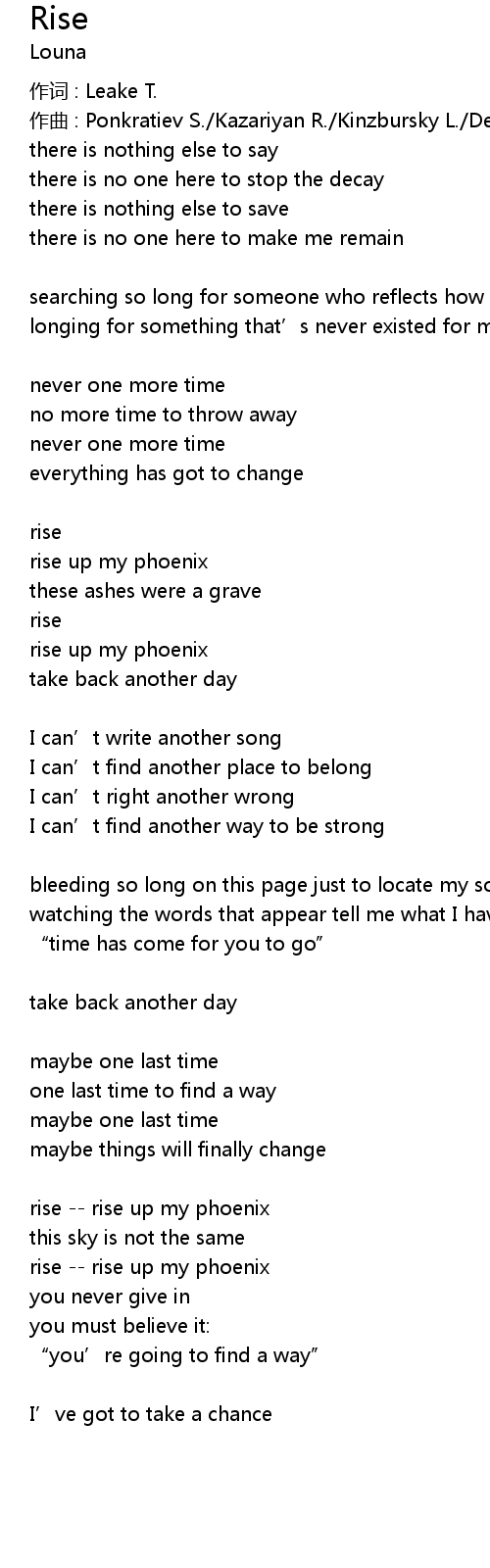 | rise rise up my phoenix | |