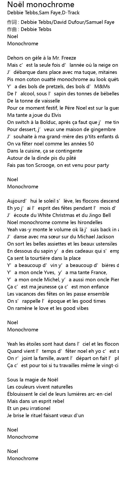 | Song | Noël monochrome |