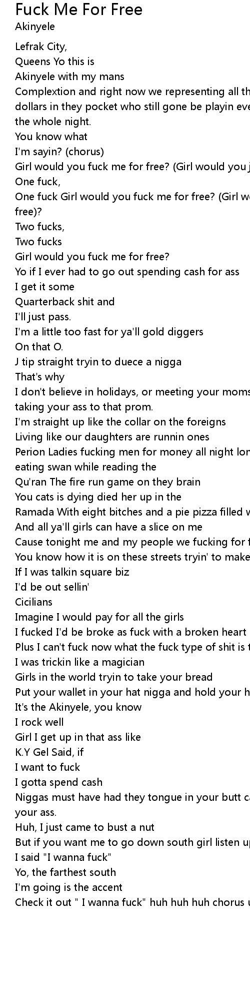 Girl would you fuck me for free? (Girl would you just fuck me for free)? |