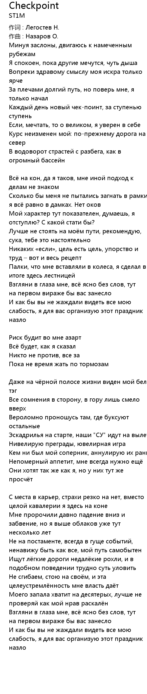 Checkpoint Lyrics