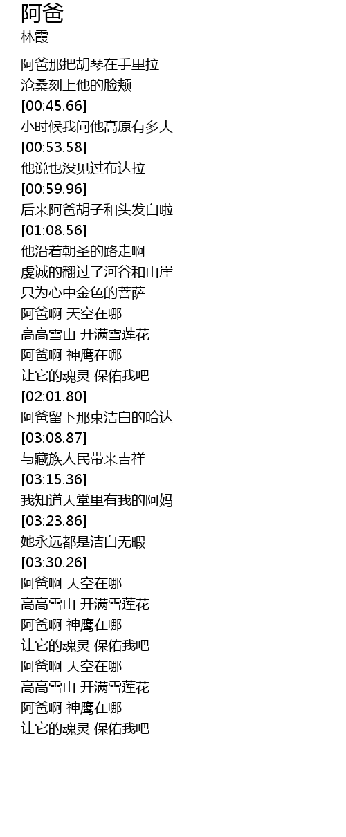 | [04:01.10] | 阿爸啊 天空在哪 |