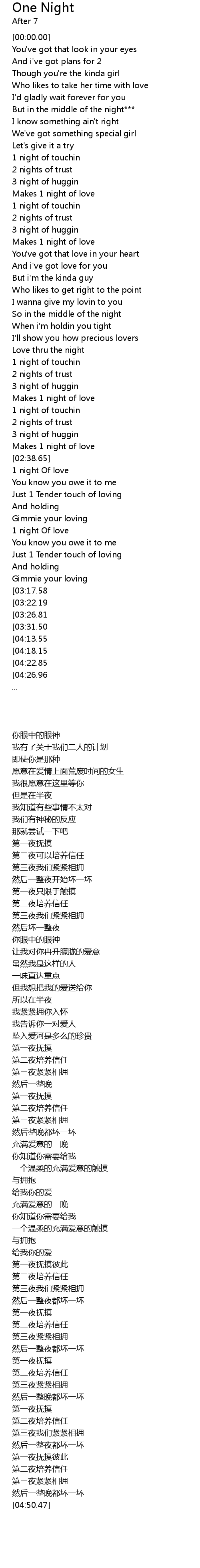 | [04:32.51][04:13.55][03:36.07] | 1 night of touchin |