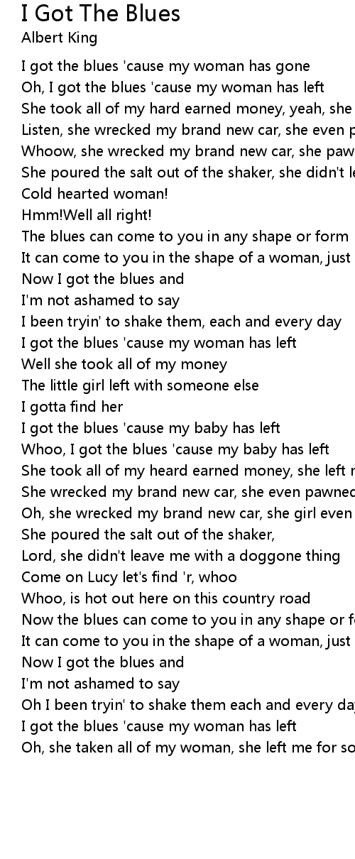 Now I got the blues and |