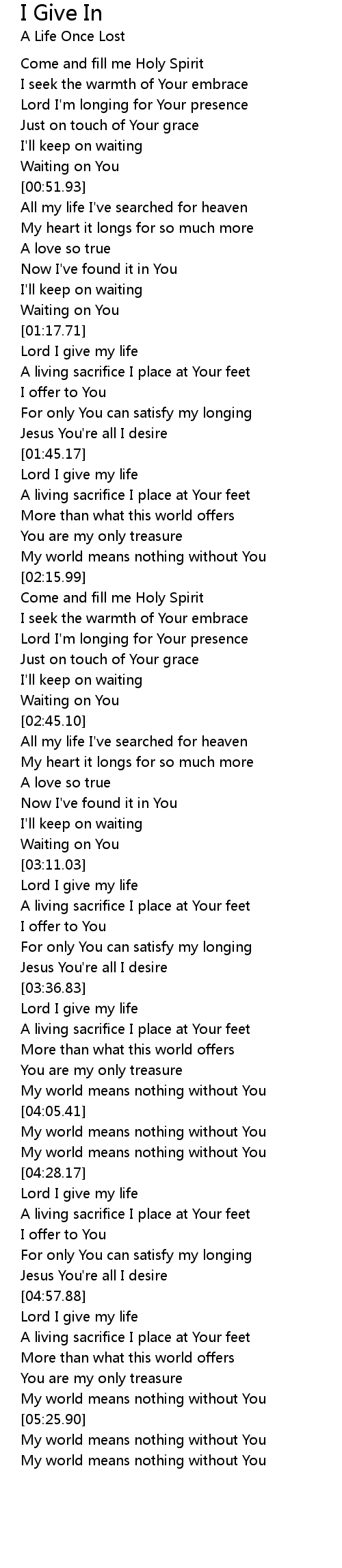 Lord I give my life |