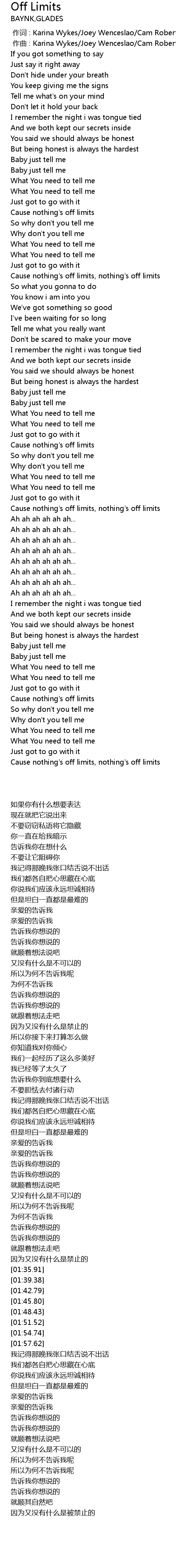 | [02:32.63] | Cause nothing's off limits, nothing's off limits |