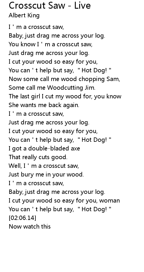 | [00:39.60] | You know I'm a crosscut saw, |