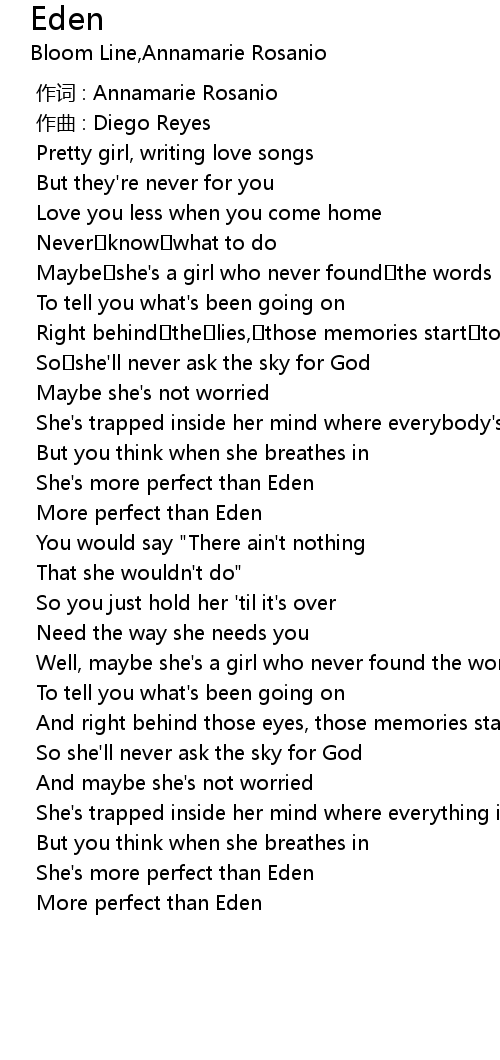 | [02:35.793] | She' s more perfect than Eden |
