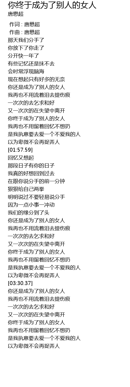 | [02:59.44] | nǐ hái shì chéng wéi le bié rén de nǚ rén |