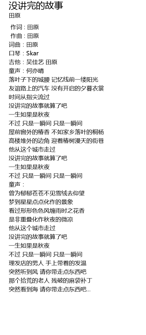 | [02:45.882] | 没讲完的故事就算了吧 |