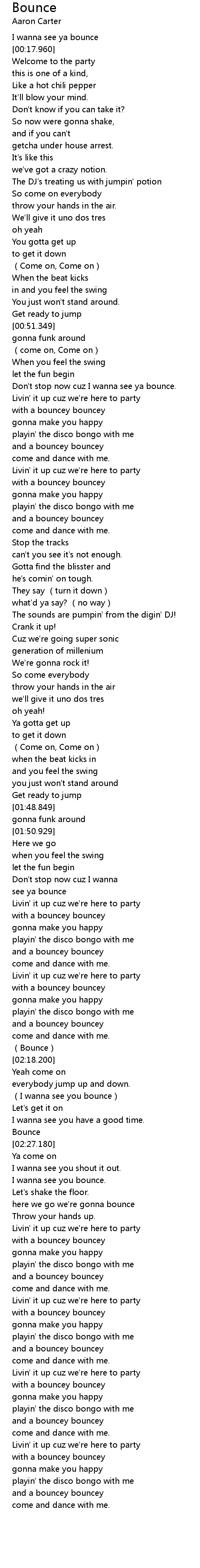 | [00:57.599] | Don' t stop now cuz I wanna see ya bounce. |
