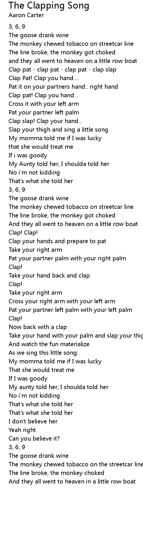 Clap pat - clap pat - clap pat - clap slap |