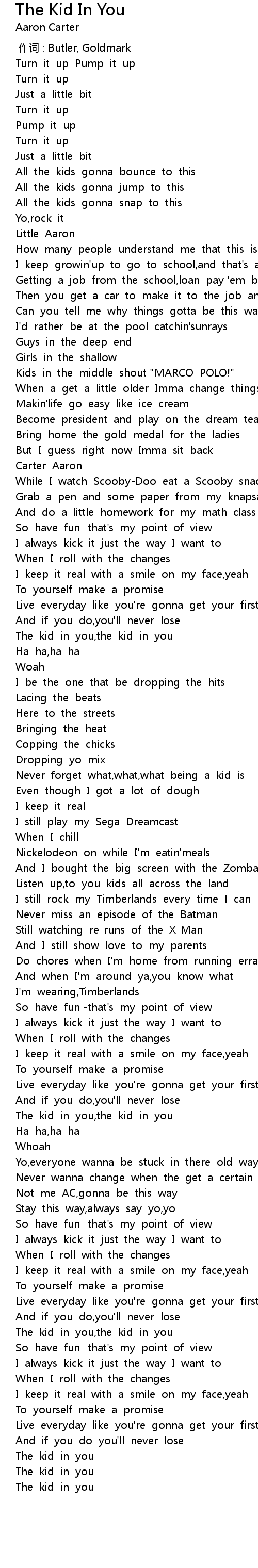 | [03:00.197] | The kid in you,the kid in you |