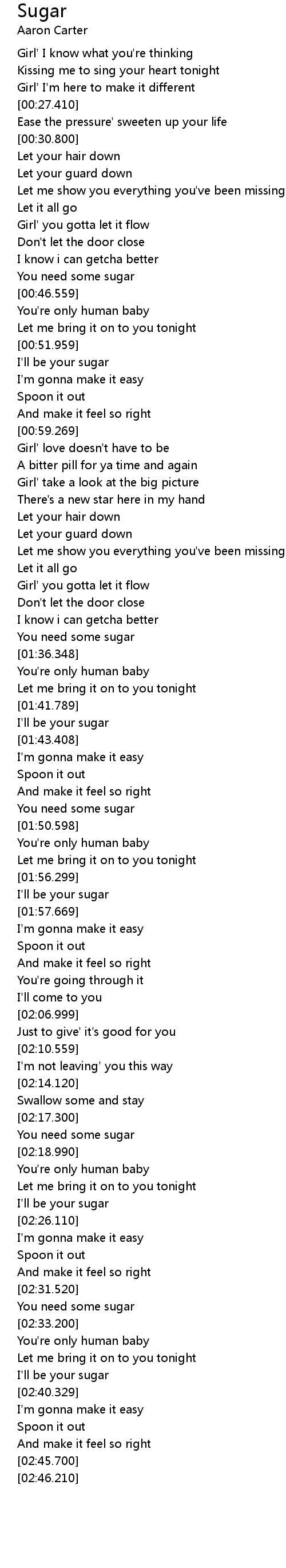 | [02:17.980] | You need some sugar |