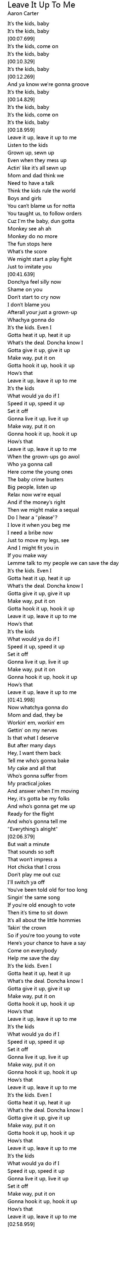 | [02:57.659] | Leave it up, leave it up to me |