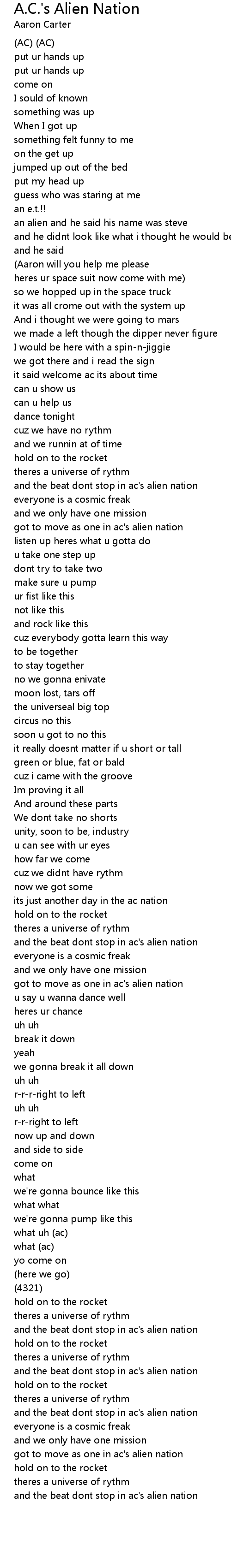 A.C.'s Alien Nation Lyrics