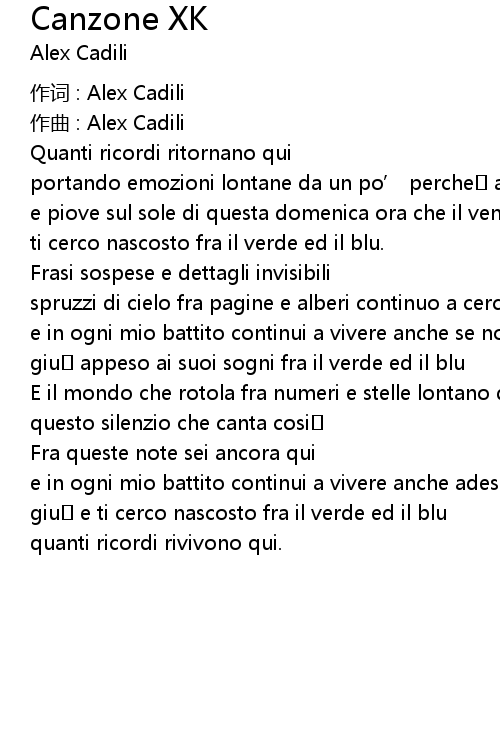 | e in ogni mio battito continui a vivere anche se non e facile per chi resta giu appeso ai suoi sogni fra il verde ed il blu | |