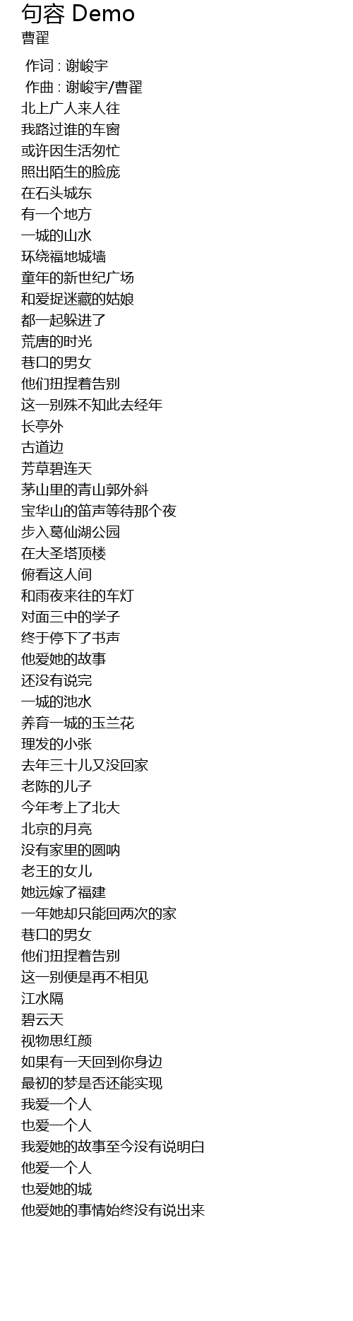 | [00:01.000] | 作曲 : 谢峻宇/曹翟 |