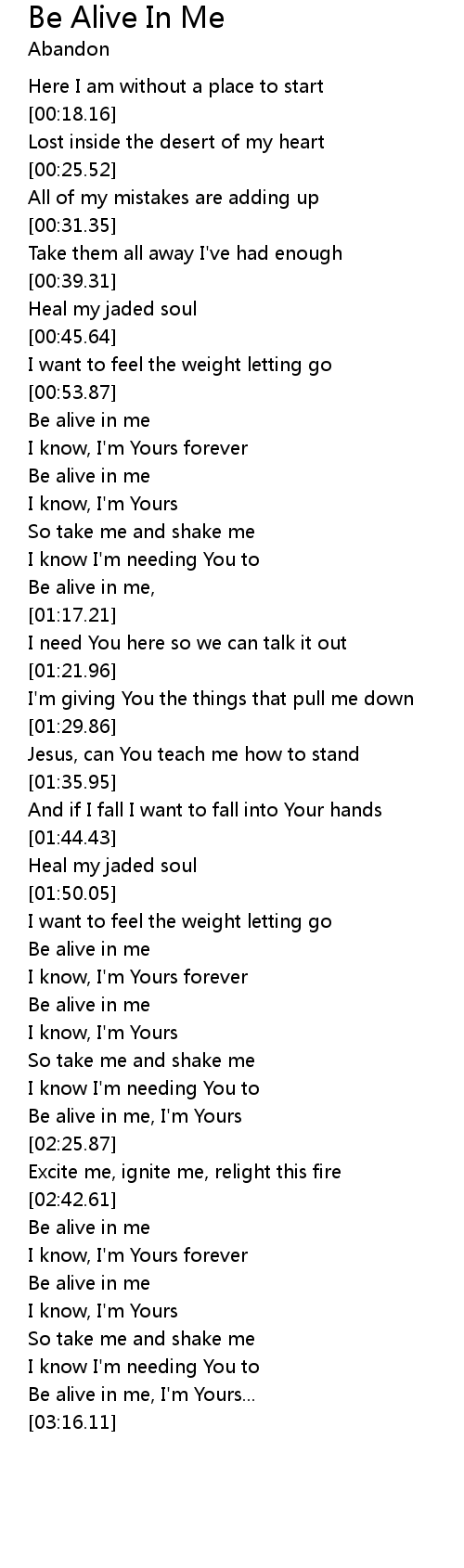 Be alive in me |