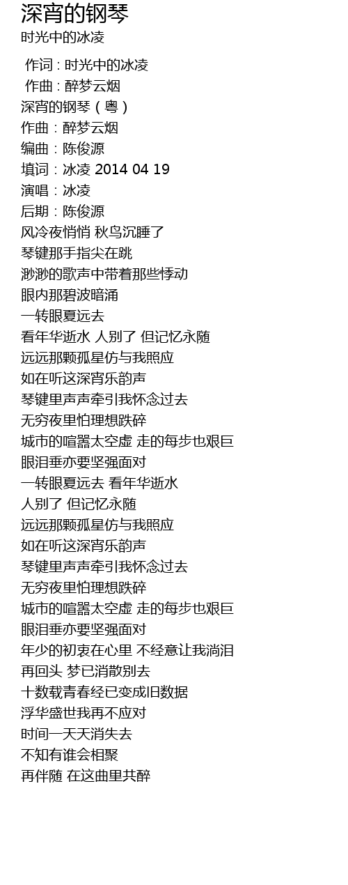 | [00:05.919] | 填词:冰凌 2014 04 19 |