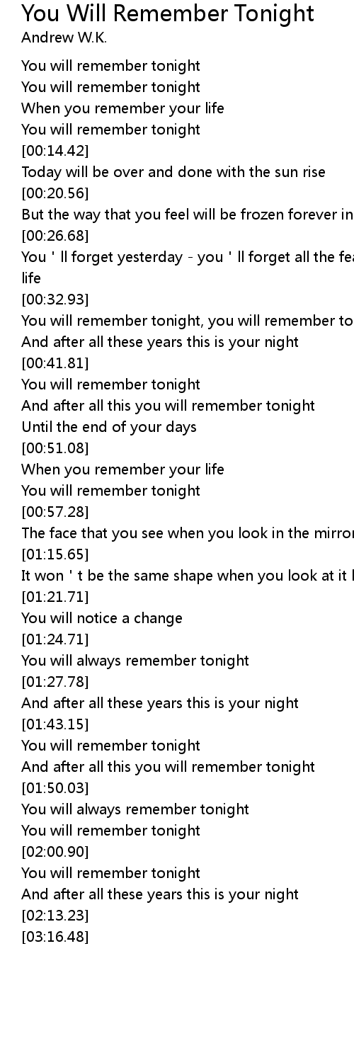 | [00:33.55] | You will remember tonight, you will remember tonight |