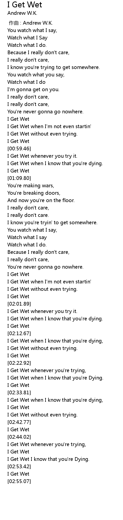 | [01:55.59] | I Get Wet |