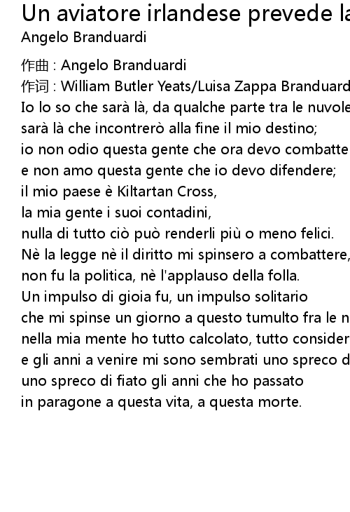 | 作词 : William Butler Yeats/Luisa Zappa Branduardi | |