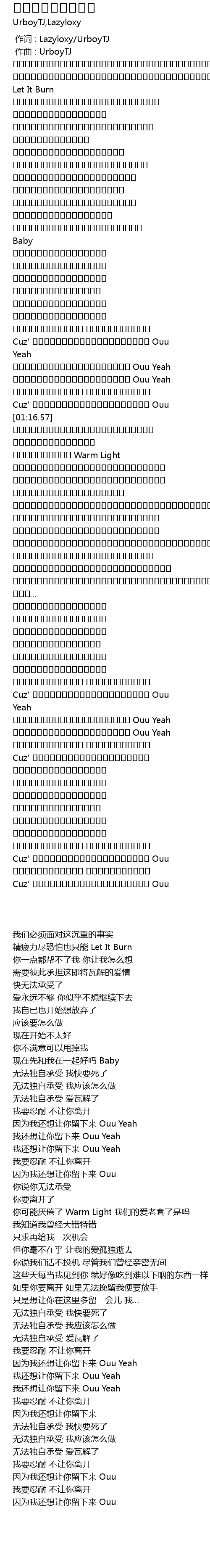 [00:00.000] 作词 : Lazyloxy/UrboyTJ