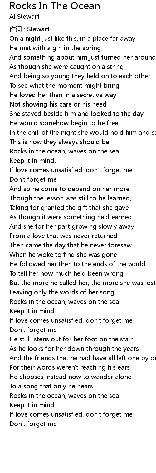 | Song | Rocks In The Ocean |