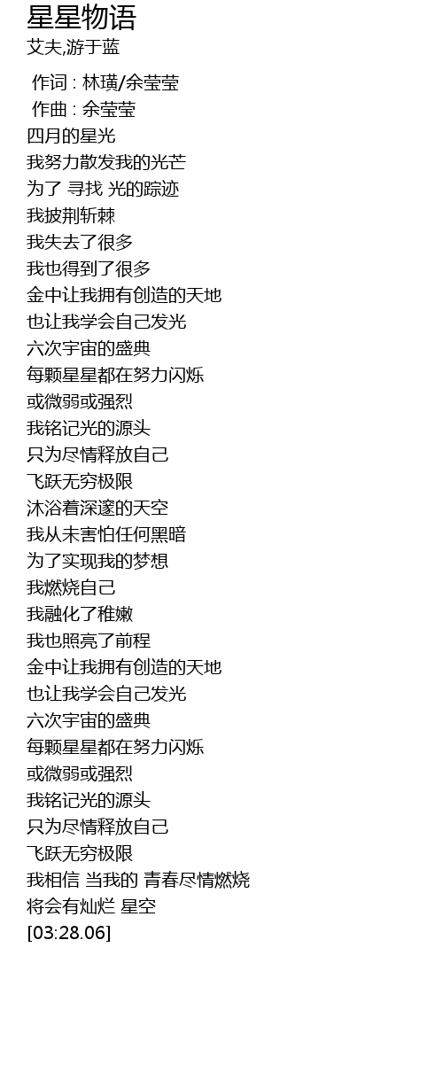 | [02:41.77] | 每颗星星都在努力闪烁 |