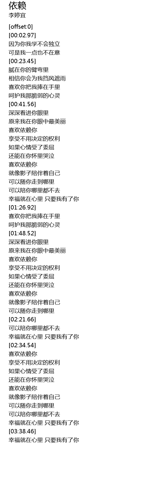 | [03:17.29] | 喜欢依赖你 |