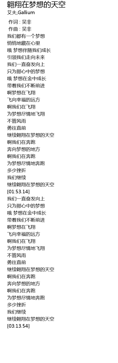 | [01:48.69] | 继续翱翔在梦想的天空 |