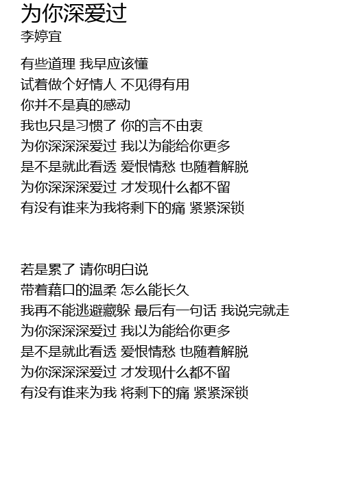 | wèi nǐ shēn shēn shēn ài guò wǒ yǐ wéi néng gěi nǐ gèng duō | |