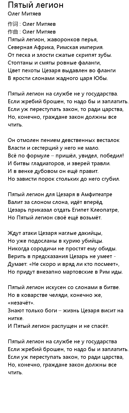 Пятый легион  Lyrics