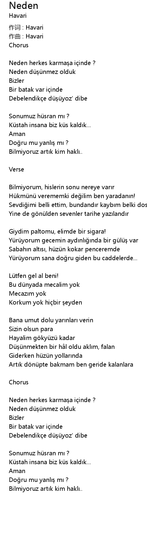 | Düü nmekten bir h l oldu akl m, falan | |