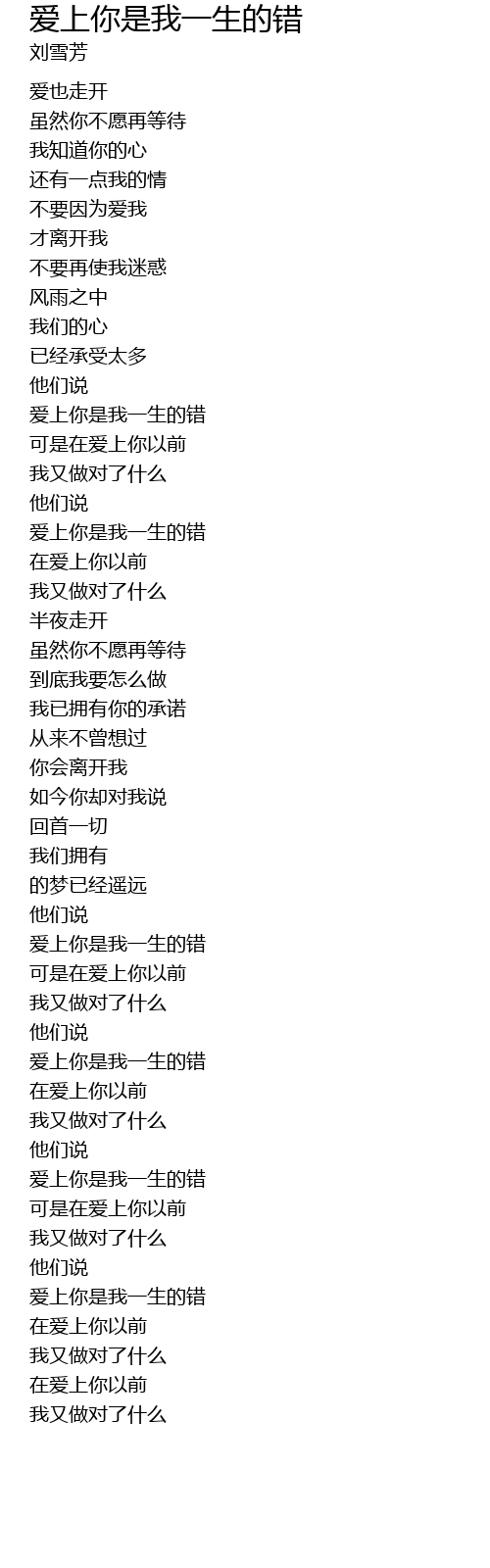 | [02:44.42] | ài shàng nǐ shì wǒ yī shēng de cuò |