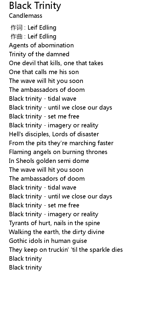 | [01:55.99] | Black trinity - until we close our days |