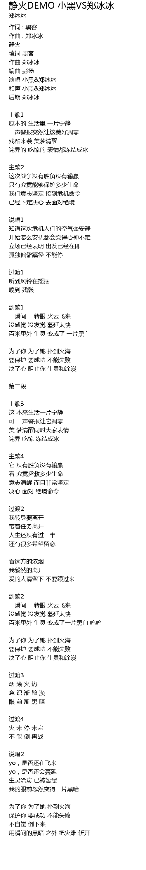 | Song | 静火DEMO 小黑VS郑冰冰 |