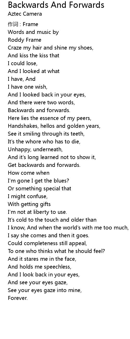 | Song | Backwards And Forwards |