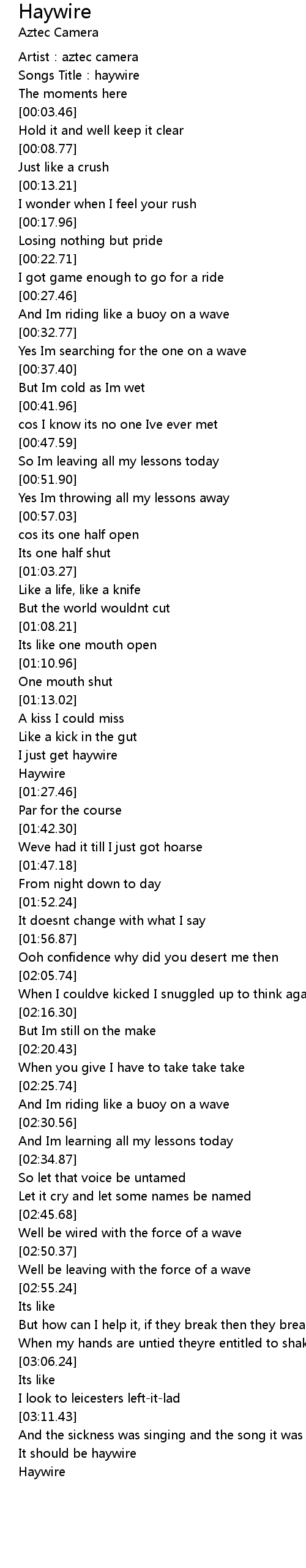 | [02:26.81] | And Im riding like a buoy on a wave |