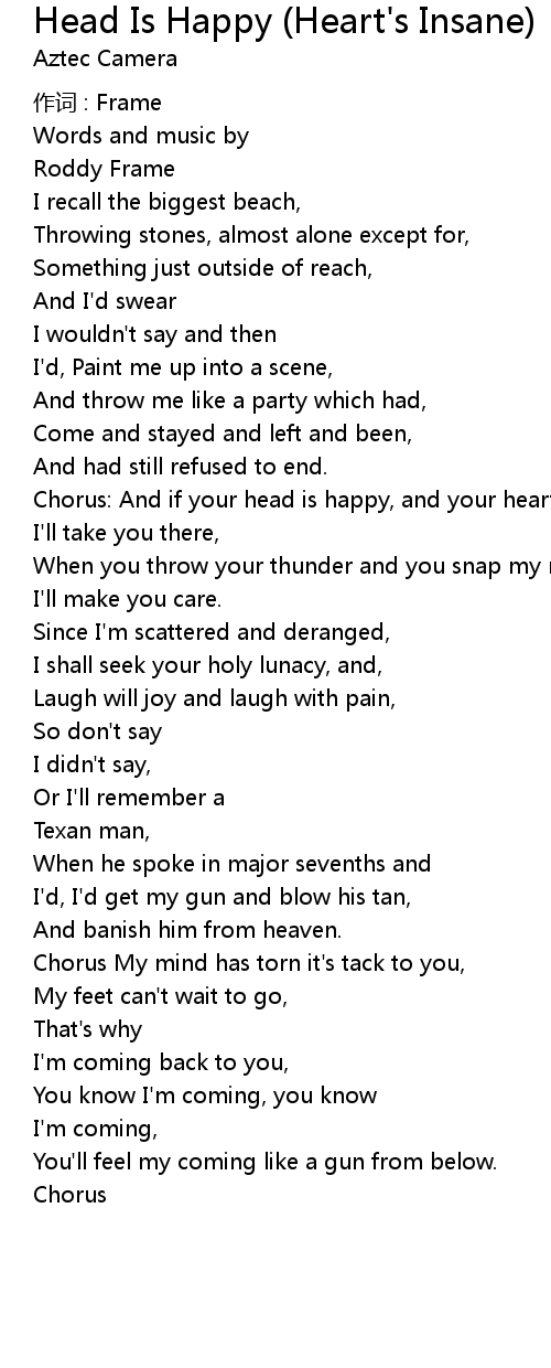 | Chorus: And if your head is happy, and your heart' s insane, | |