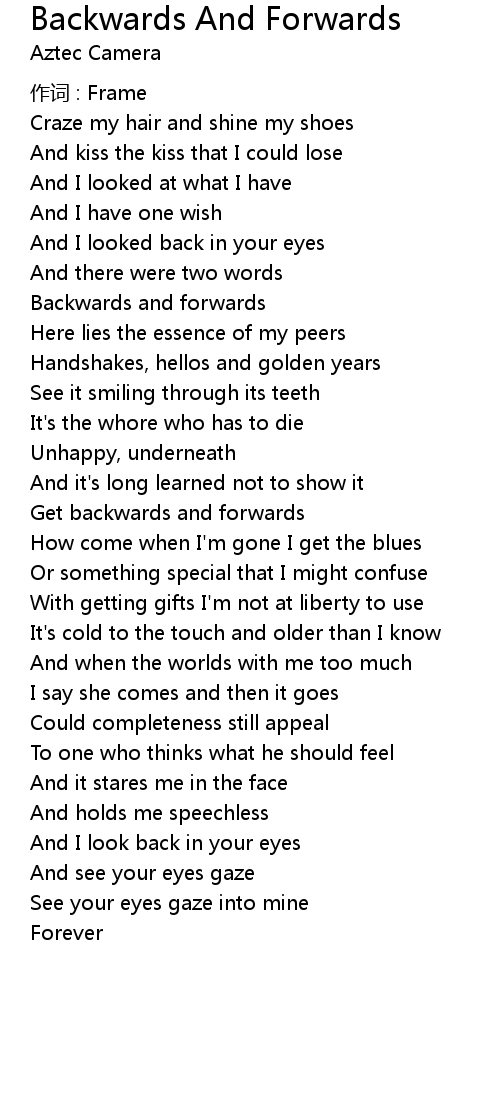 | Song | Backwards And Forwards |